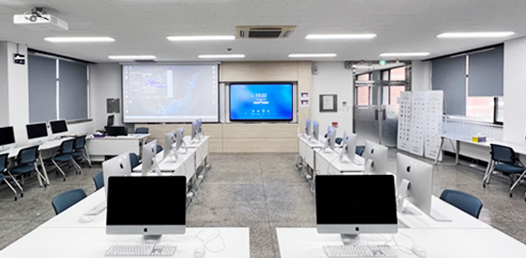 시각디자인과 컴퓨터그래픽 실습강의실로 매킨토시 컴퓨터 및 포토샵, 일러스트레이터, 프리미어, 애프터이펙트, 인디자인 프로그램과 빔프로젝트 등을 갖추고 있다.